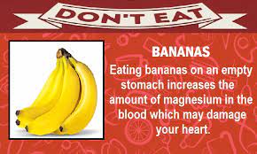 Eating bananas on an empty stomach increases the amount of magnesium in the blood which is not good news for your heart. Bananas have a high content of magnesium. Bananas have a high content of magnesium.
